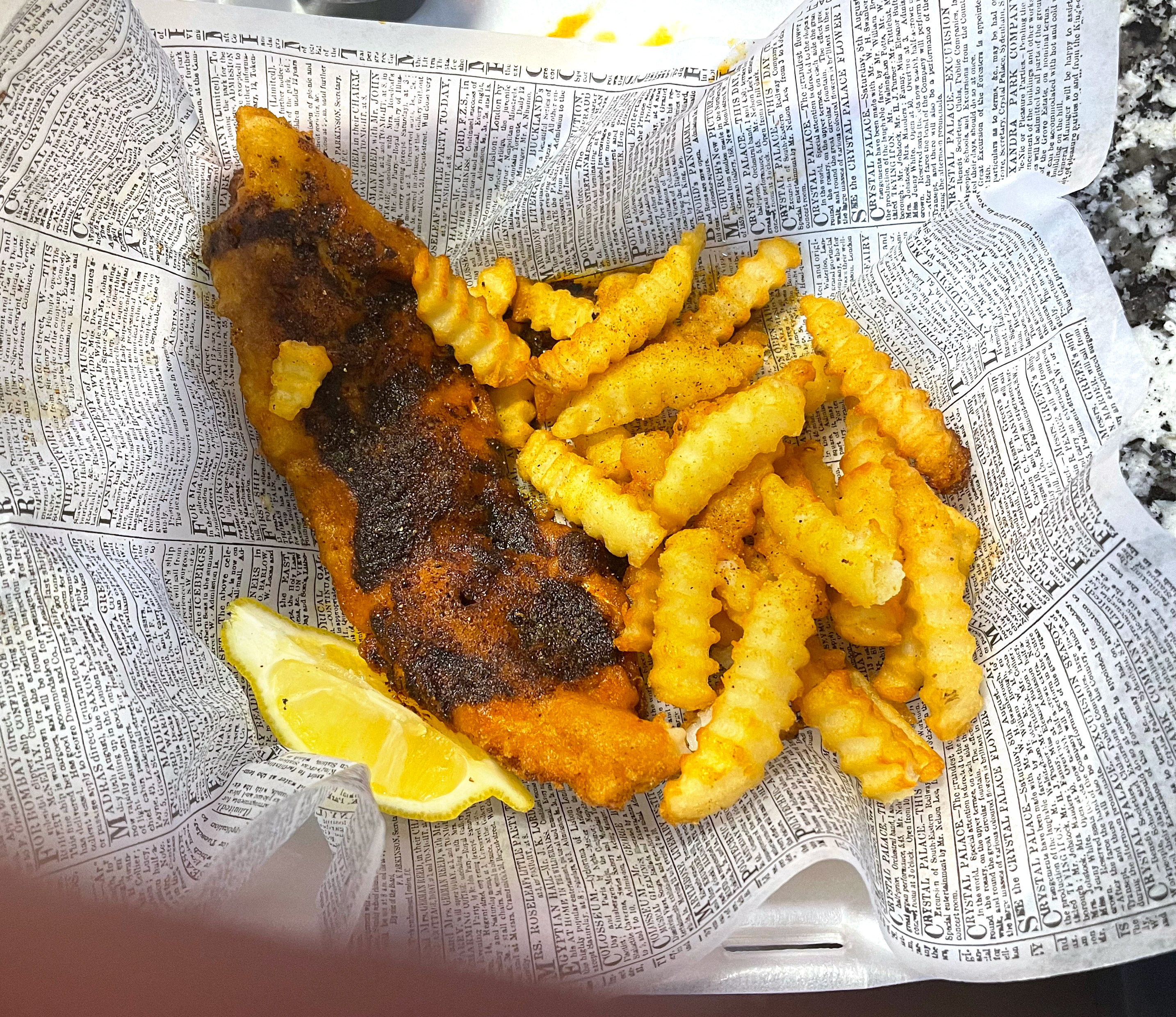 Glad we stopped in! Both my husband and I had Fish & Chips (spicy). Fish was definitely on point. Definitely enough food with lots of flavor. Highly Recommended.